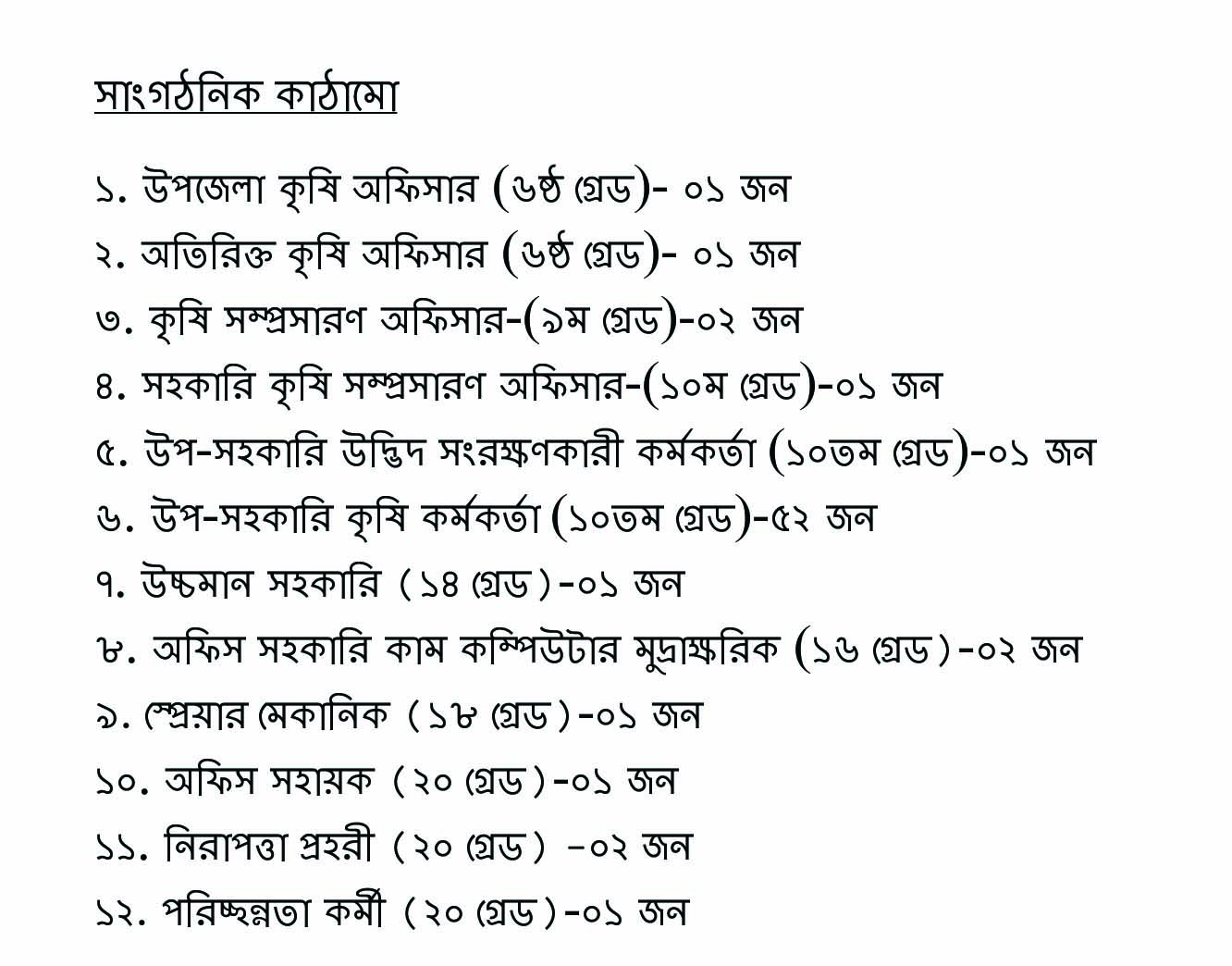 ১. উপজেলা কৃষি অফিসার (৬ষ্ঠ গ্রেড)- ০১ জন